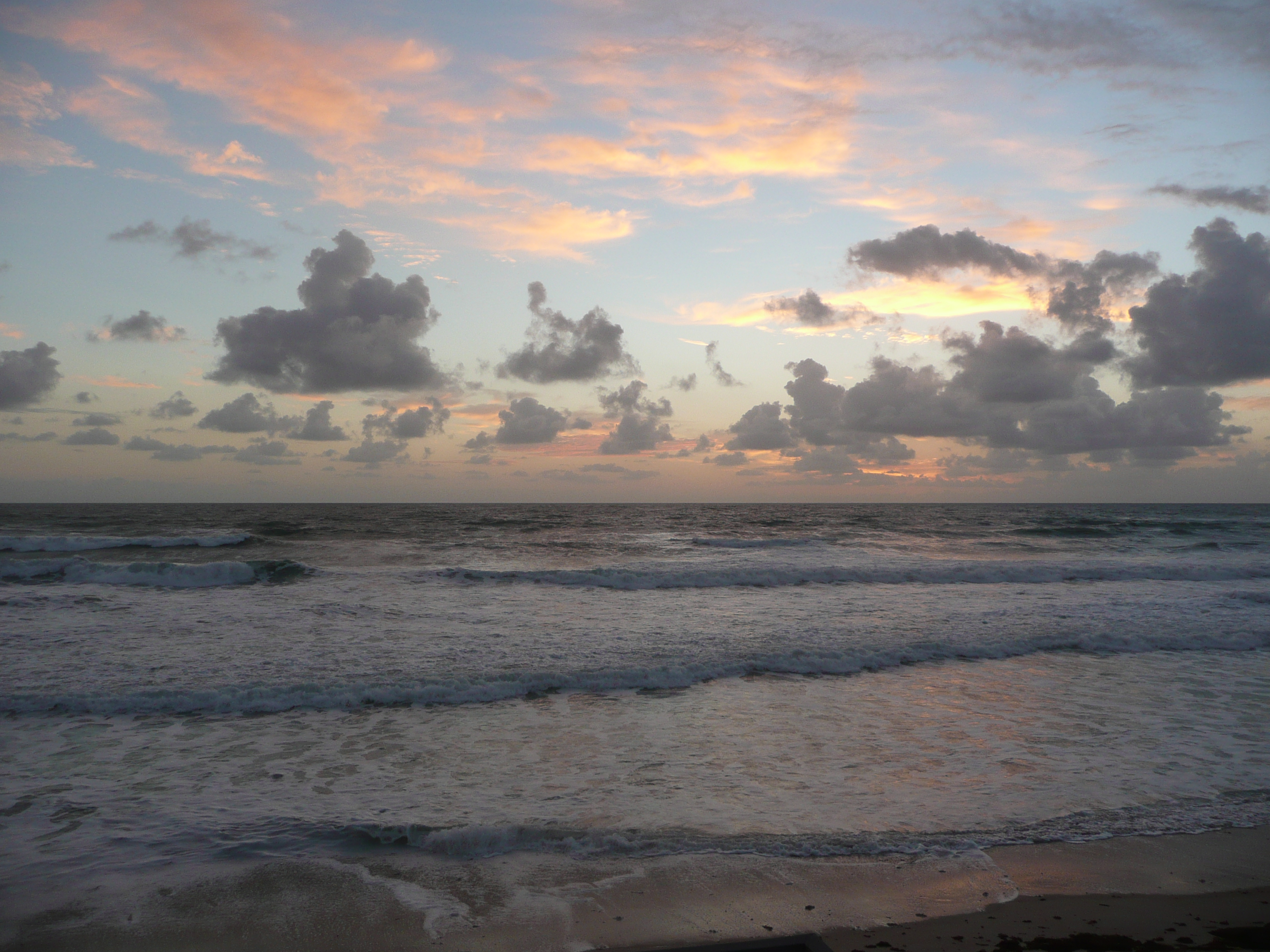 The clouds were low and puffy over the horizon with the most beautiful pinks, purples, blues and oranges. The sun was beginning to emerge from the depths.