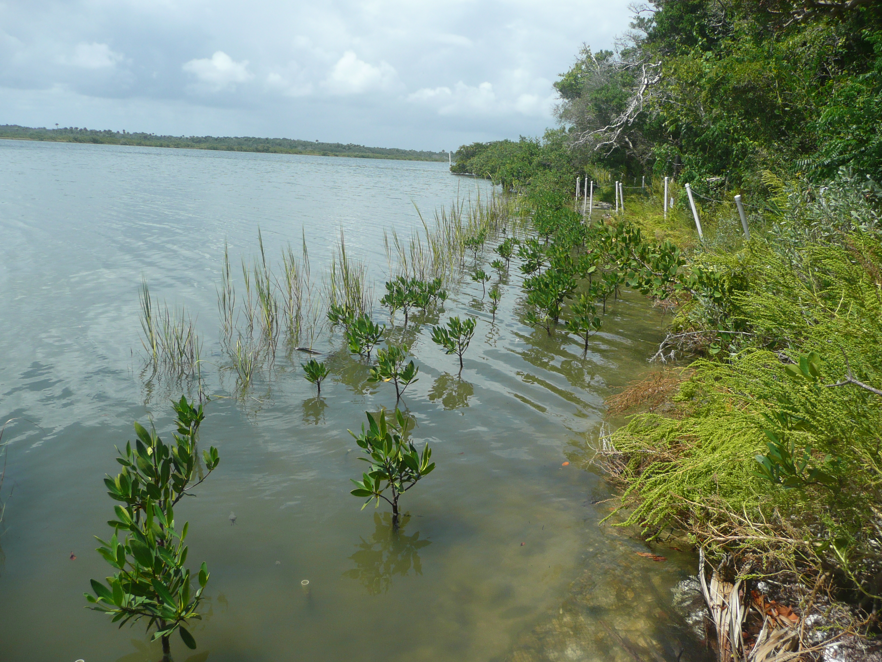 David: We walked back down the boardwalk and around to the base of the midden that was closest to the shoreline of the lagoon. Interpretive signage described some of the history of the midden as well as on-going preservation efforts. Apparently shoreline erosion was an issue and we could see efforts to stabilize the shoreline with native plantings and armoring. I was glad to see that my alma mater, UCF, was getting in on the act.