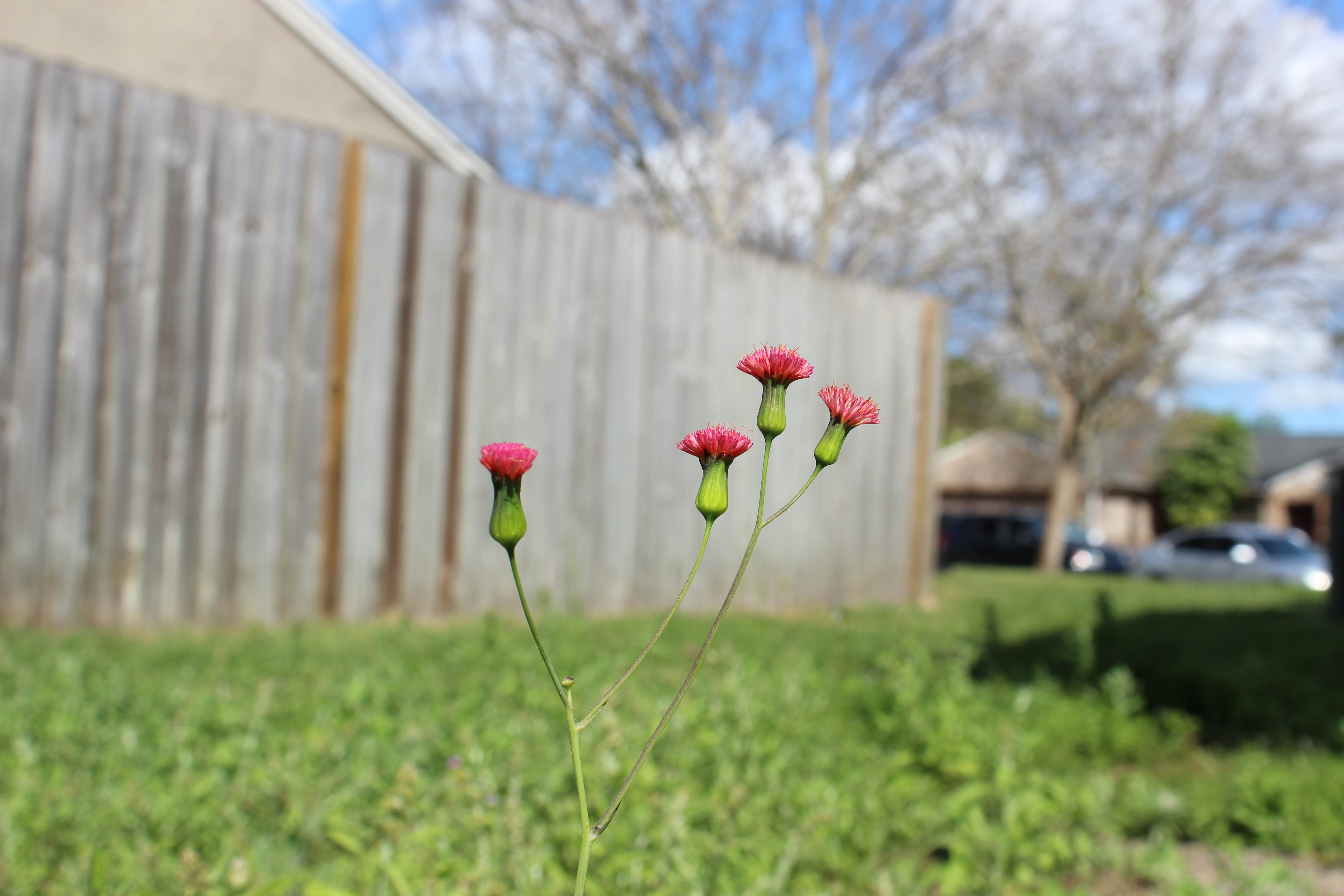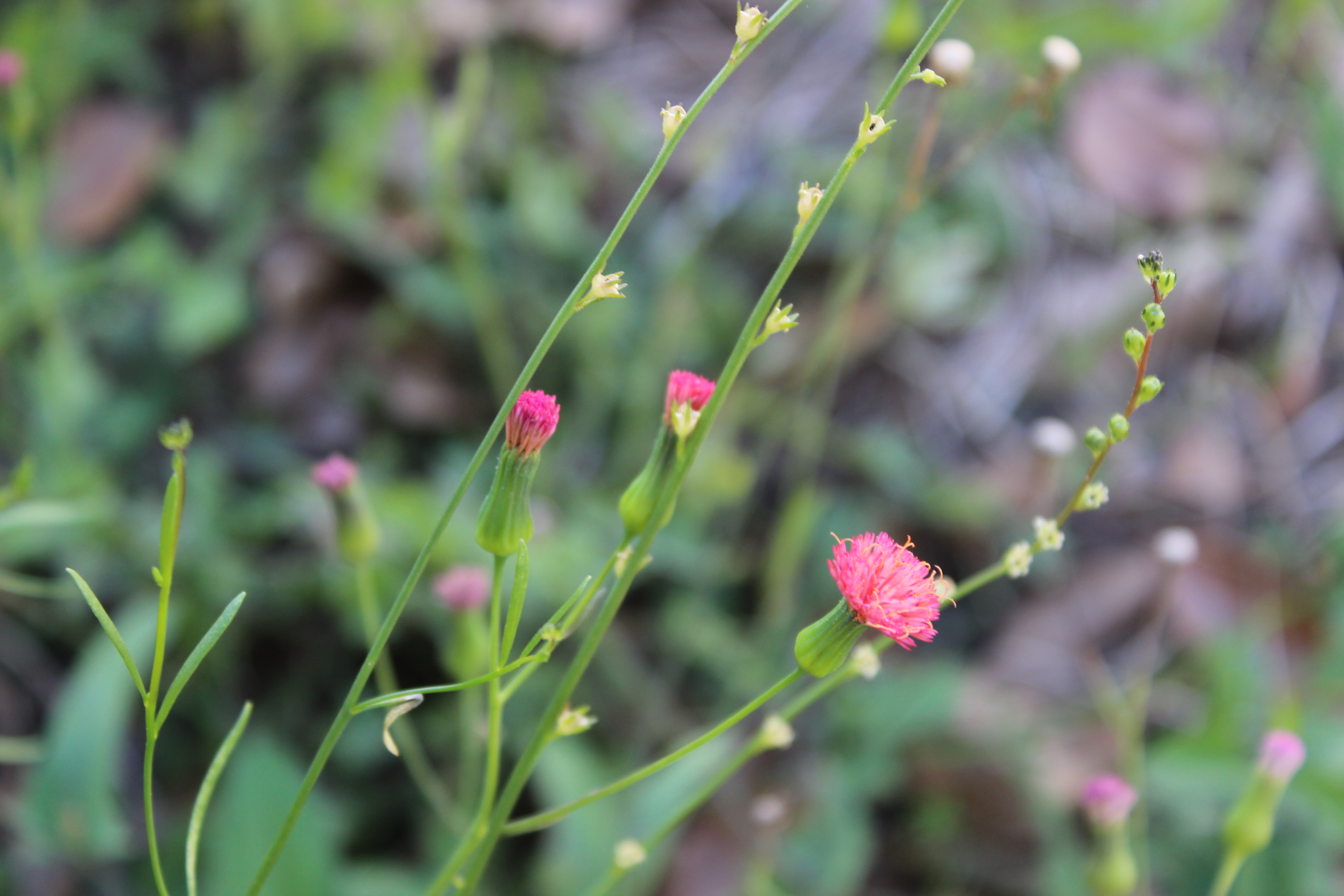 The second is Tasselflower (Emilia fosbergii). Unlike Toadflax, this plant is listed as having been introduced into the United States. Also, unlike Toadflax, this plant may flower all year long as opposed to only the winter and spring for Toadflax.