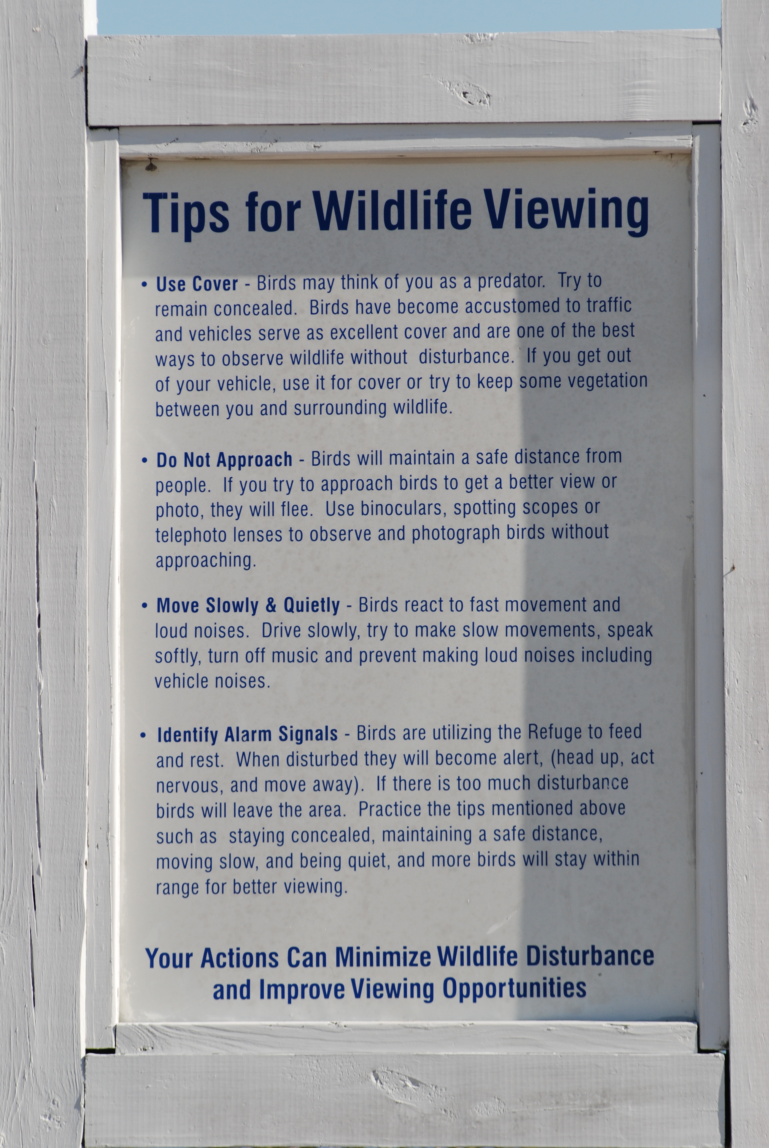 J: There are even tips for wildlife viewing as you can see in the photo. Another good tip: If you see someone with a camera to their face, don’t tap them on the shoulder and ask them, “What do you see?” Chances are, if you look in the direction the lens is pointed, you will see “it.” In my case, I don’t necessarily know what “it” is until I ask David. I just know “it” will make a pretty picture.